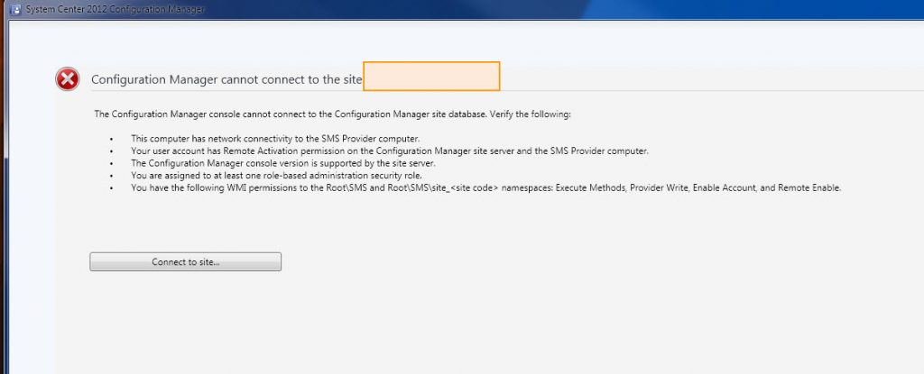 Recientemente me he topado con un error batante raro. En uno de los entornode de SCCM que administro, de repente ha dejado de funcionar la consola de amdinistración. Al intenter conectar al sitio principal de SCCM muestra el siguiente error genérico.